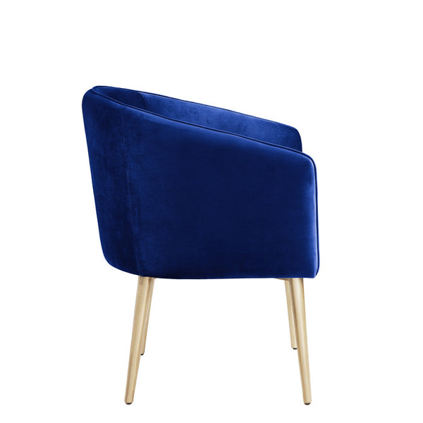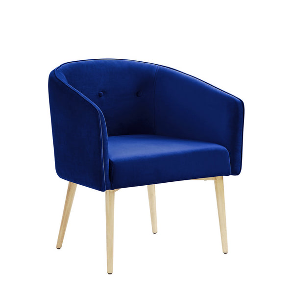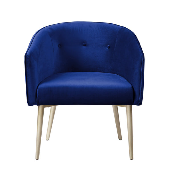 Put together a cool retro design with modern materials and you have got the Nikki accent chair. Eye-catching luxurious navy velvet fabric combines easily with platinum painted legs to look great without compromising on comfort.
