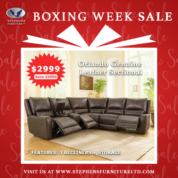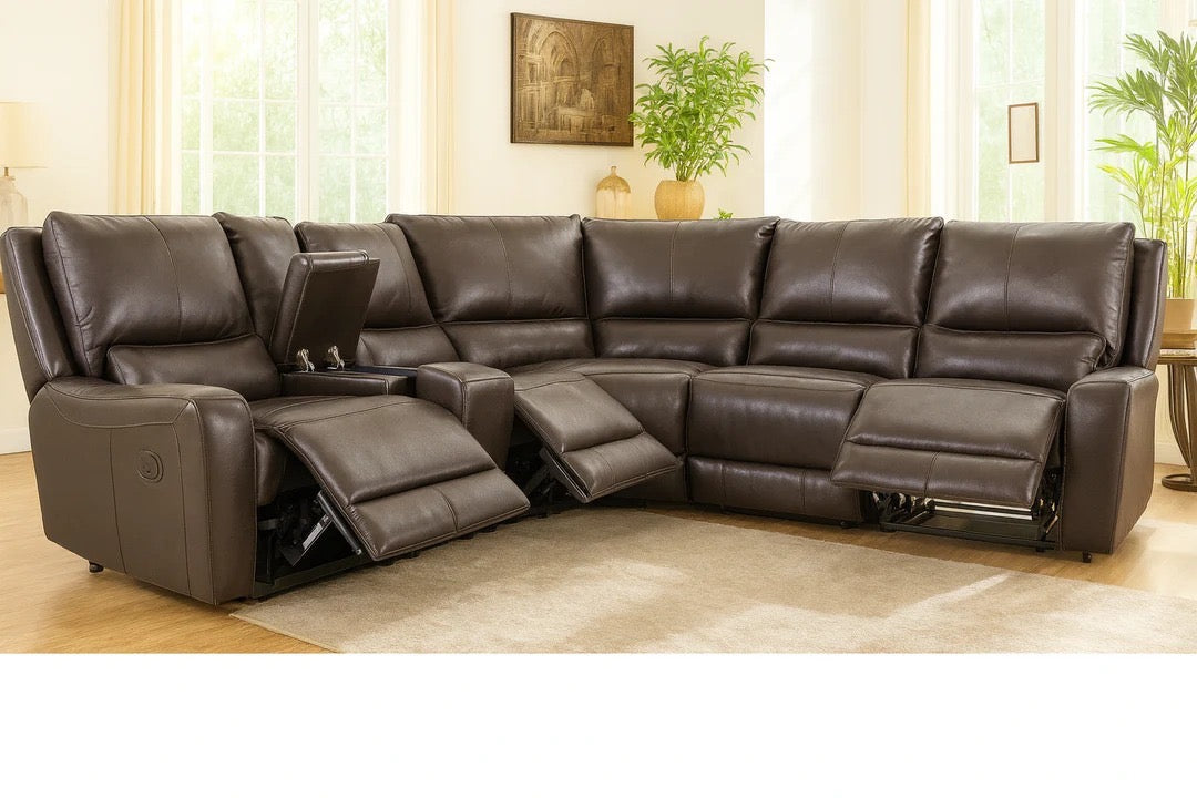 The Orlando Collection blends style and function to create a platform for relaxation. Modernizing the look of the ample seating is an inset contrast welt. The sectional is a manual recliner. With the reclining mechanism, the user is changed from a seated position to a reclined position smoothly. Dark brown premium genuine leather.