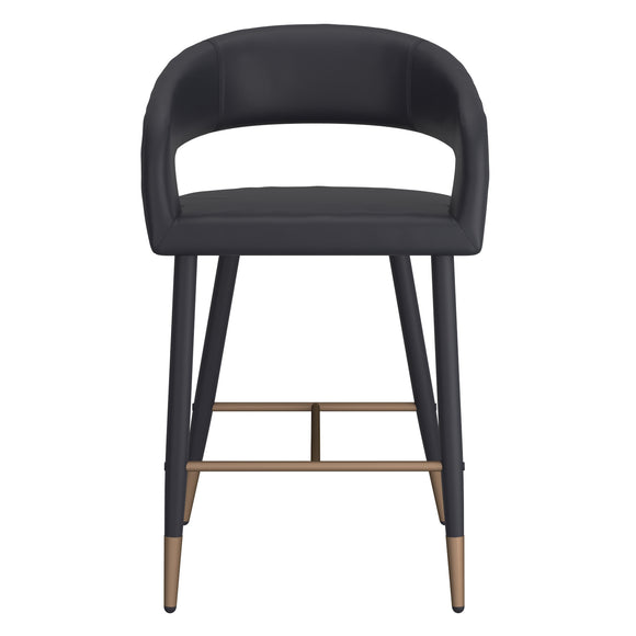 Crimson 26" Counter Stool in Black Faux Leather and Black and Aged Gold