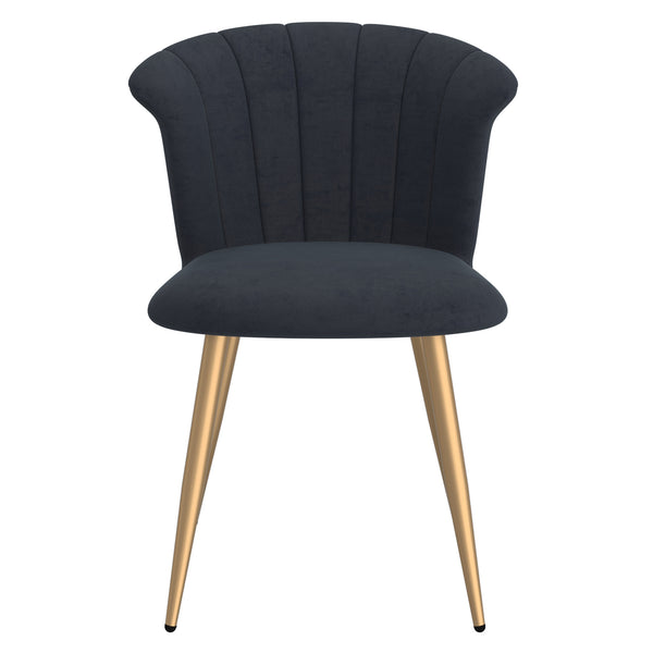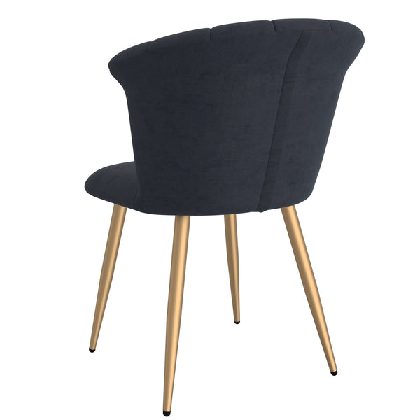 The modern wing-back look of this chair will bring beauty to any dining space. Rich velvet upholstery, metal A-line legs, easily incorporated design. Match with your desired table style to create a look you will love