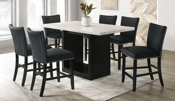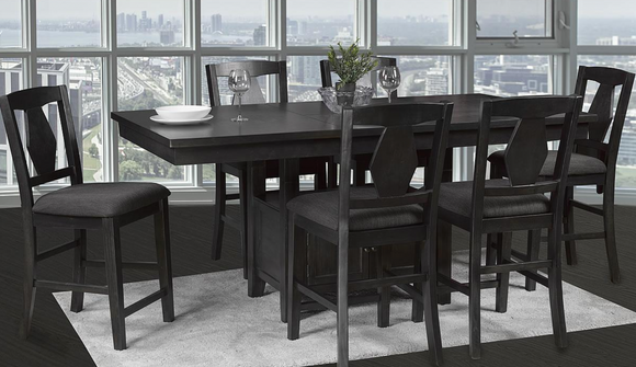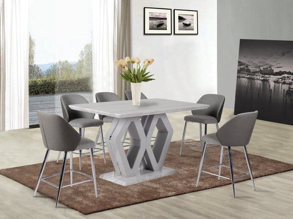 Stark/Akira 7pc Dining Set in Aged Gold with Grey Chair