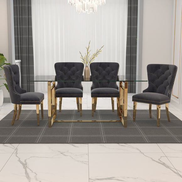 Eros/Mizal 5pc Dining Set in Gold with Grey Chair