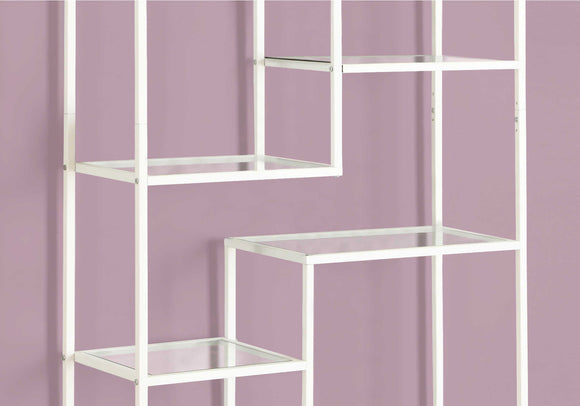 BOOKCASE - 72"H / WHITE METAL WITH TEMPERED GLASS