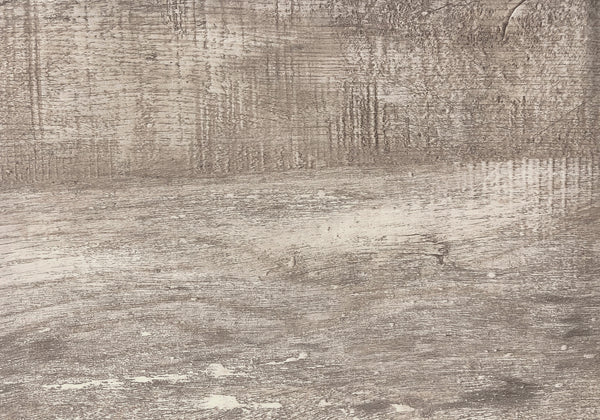 - Thick panel taupe reclaimed wood look table top adds an industrial touch your home office space in a small home, apartment or condo