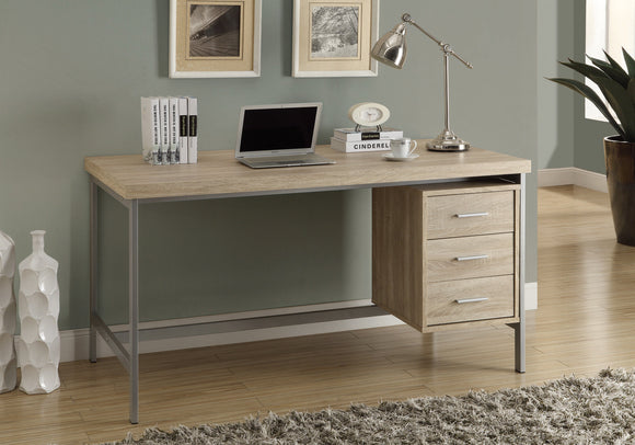 COMPUTER DESK - 60"L / NATURAL WITH SILVER METAL