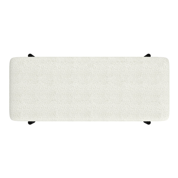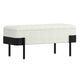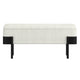 - Soft, ivory boucle fabric upholstery and black metal frame and legs